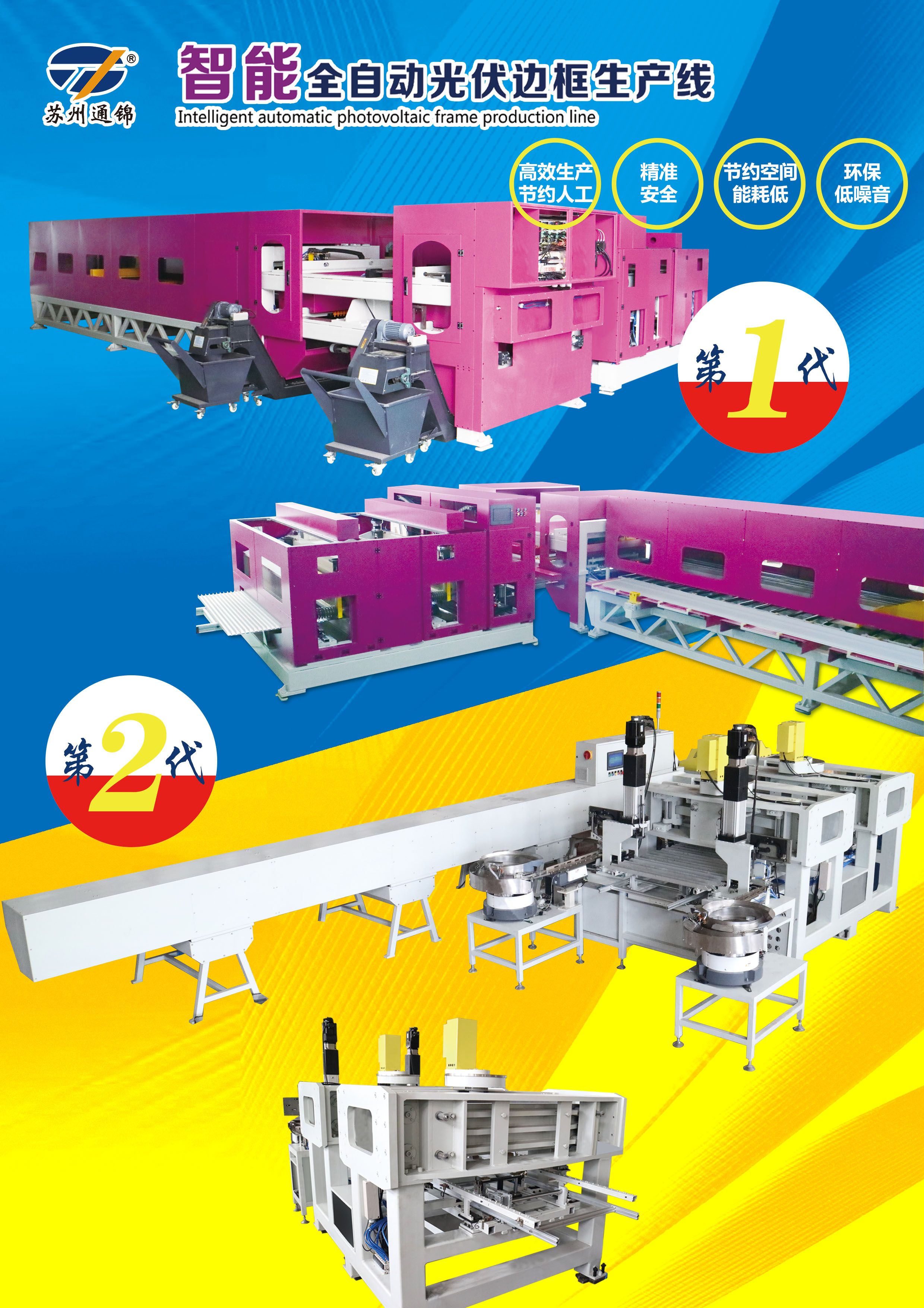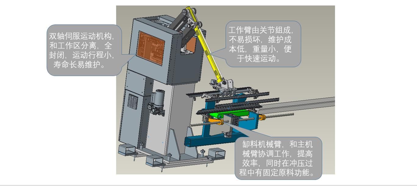 本光伏邊框生產(chǎn)線將機器人的智能化引入、融進該項加工工藝,為用戶生產(chǎn)需求量身定制。由送料傳輸、鋸切、C面沖孔、自動上角碼、內(nèi)B面鉚點、長度、孔位檢測、包裝等工序組成。該光伏邊框生產(chǎn)線可以由傳統(tǒng)沖壓線及標(biāo)準(zhǔn)鋸切機及常用模具配合自動上料鋸切,下料機器人沖壓及自動上角碼,鉚點及下料等工序組成,結(jié)合了手工線的優(yōu)勢,并采用機器人及智能傳料。并采用總線控制運動控制系統(tǒng),滿足制造工藝的自動化控制要求,實現(xiàn)高效率、高精度,實現(xiàn)全自動化。為光伏邊框生產(chǎn)廠家所面臨的自動化程度低、產(chǎn)品質(zhì)量不穩(wěn)定、作業(yè)人員工作強度大等問題提供了智能自動化解決方案。